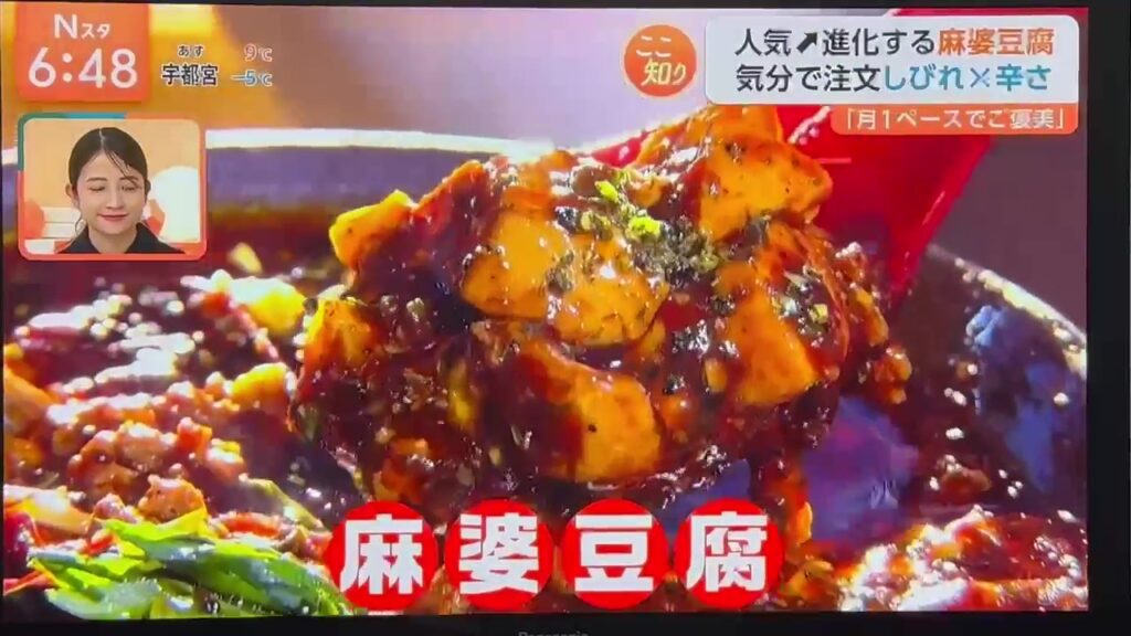 【メディア掲載】麻婆豆腐ブームについて、TBS「Nスタ」にてコメントをしました。 2026.01.30 2026.02.14 麻婆豆腐ブームについて、zoomで取材を受けて、Nスタでコメントが放送されました。麻辣湯(マーラータン)人気といい、四川料理から派生した料理の潮流が良い感じで来ています。今後も楽しみです!